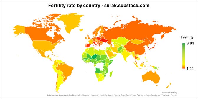 The most likely outcome is that the mainstream conservative movement will surrender. However, the plain people will continue their quiet growth, at least until they become large enough to pose a perceived threat to the powerful left, who will take brutal steps to bring them under control. Then Western civilization will have to be kept alive somewhere else, I know not where. I used to be optimistic about eastern Europe, but even there, fertility rates are far below replacement (yellow in the graphic below).